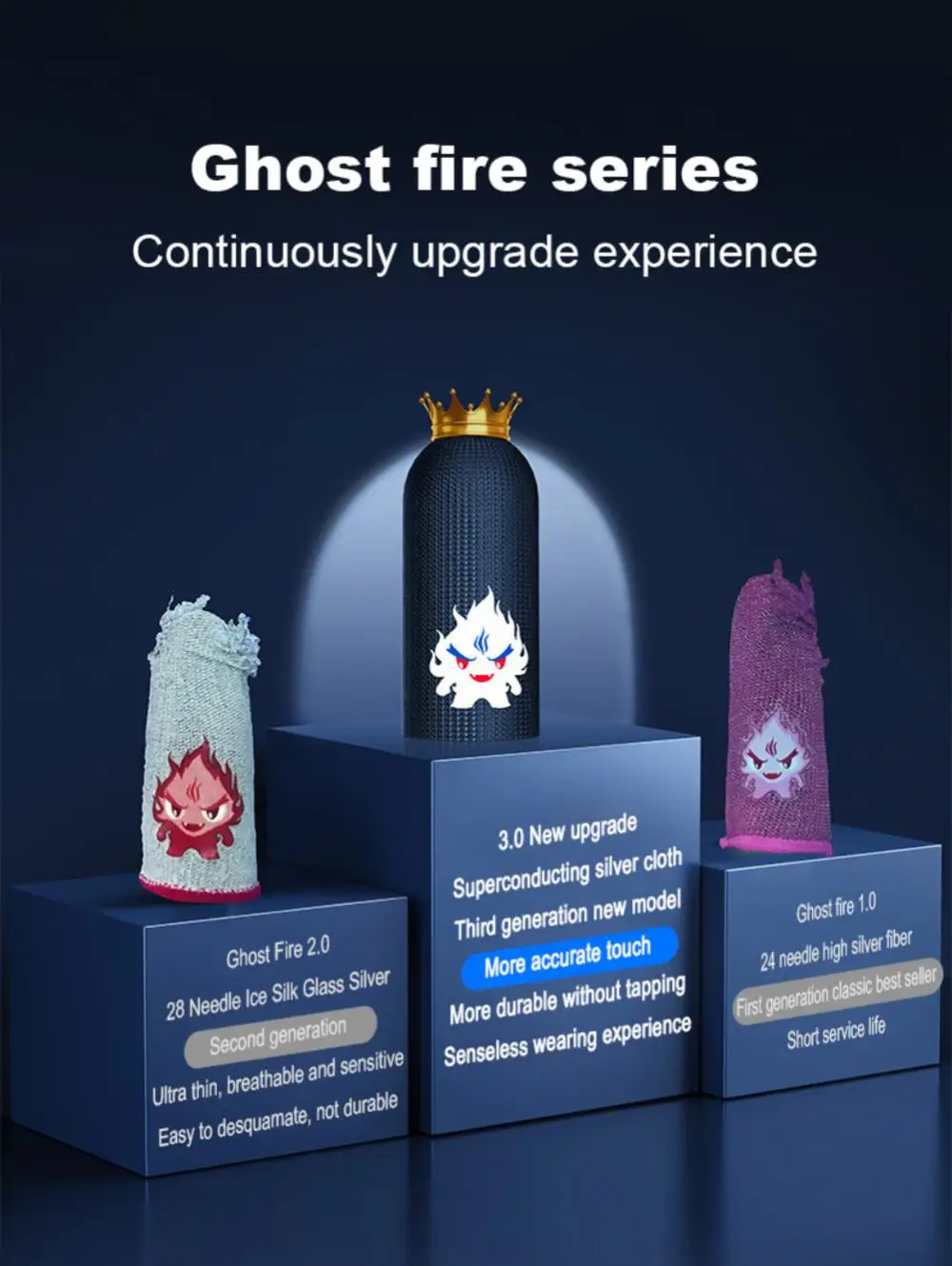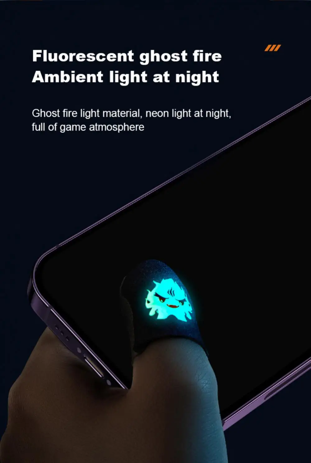 1Pair Ghost fire luminous anti-sweat game finger Cover Game Finger Sleeve Game Controller Touch Screen Gaming Thumb Gloves