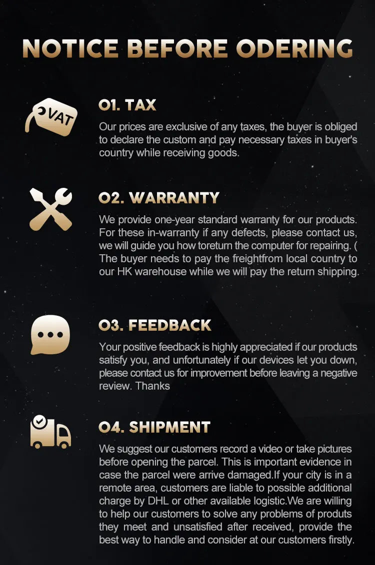 Warning, because different countries have different import regulations, our price does not include any taxes. Buyers are responsible for customs clearance. We do not accept orders that are unwilling to clear customs by themselves. ,Thank you for your cooperation.