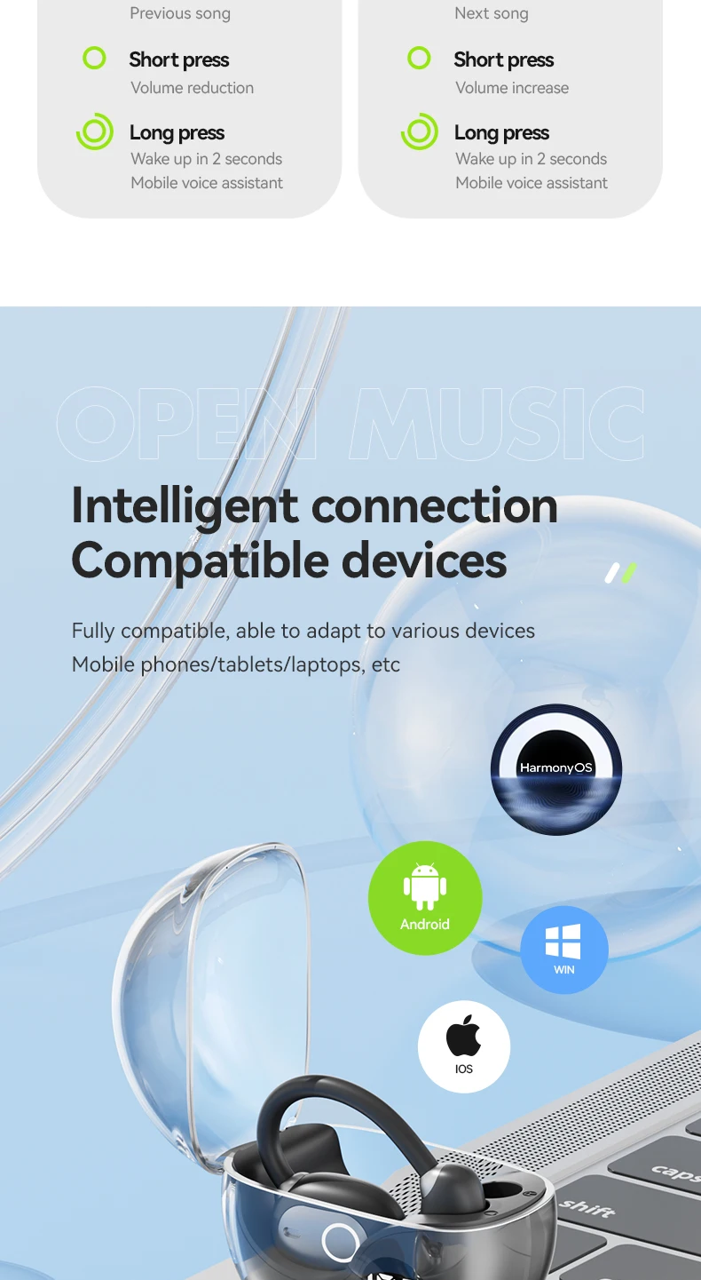 Bluetooth earbuds adapting in-ear design and the composite diaphragm moving coil unit make the sound full and thick, with a natural sense of hearing, restoring the authenticity of the audio and the dynamics of the sound. Feels like hearing on the scene, providing a realistic sound for you.