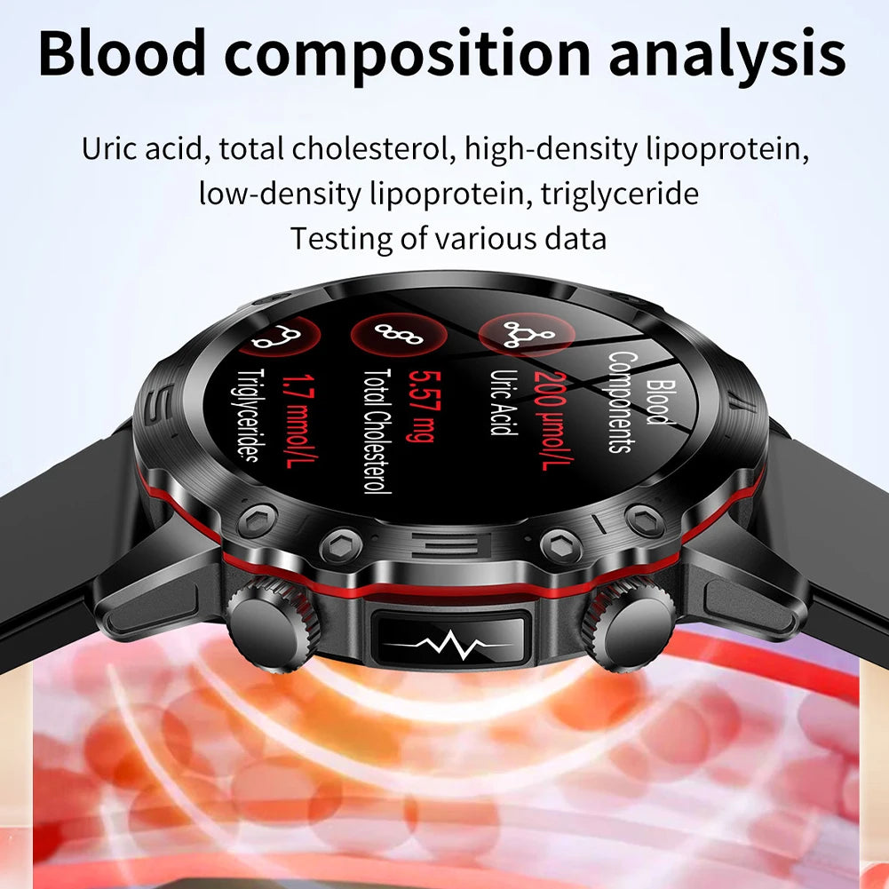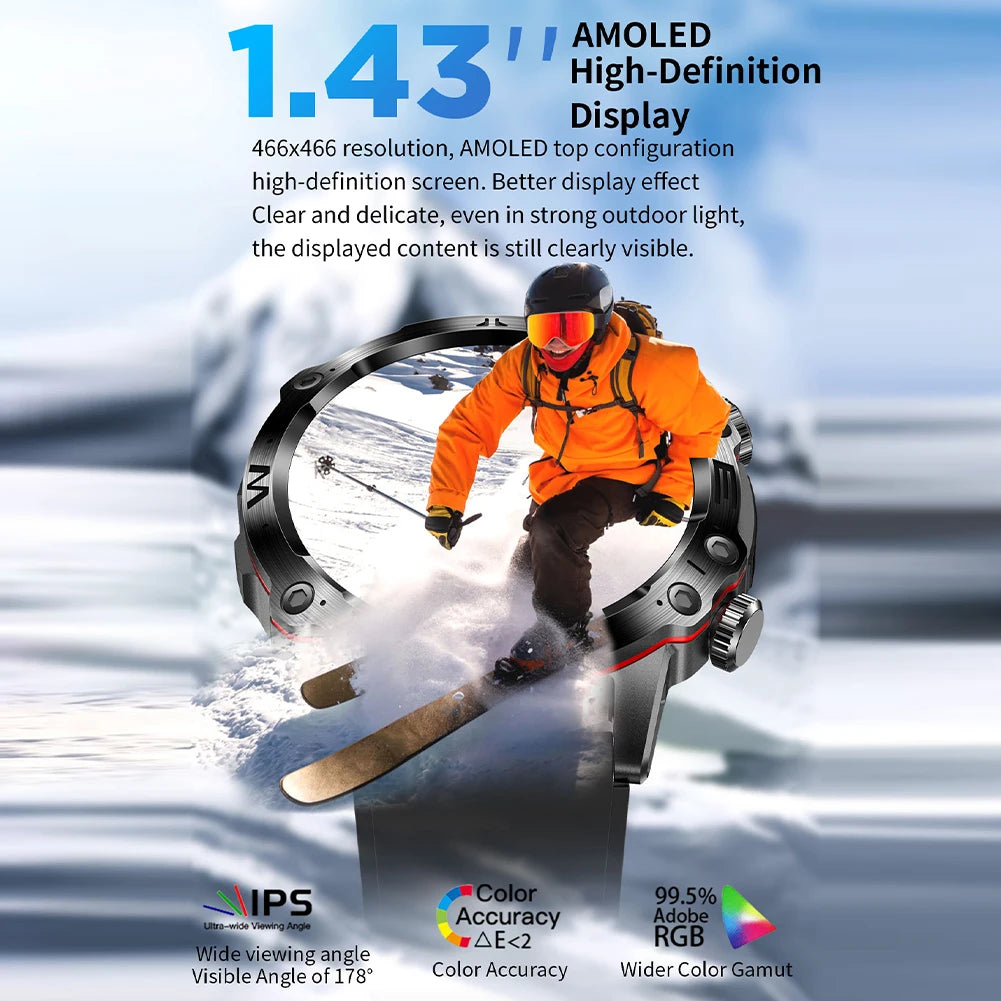 Features: Outdoor exercise, ECG function, 1.43-inch AMOLED Super Retina 466x466 full touch screen, non-invasive blood glucose, blood composition(uric acid lipid function), body composition BMI body fat, HRV function, AI medical diagnosis, Mete function, SOS emergency call function, temperature monitoring, blood oxygen, Blood pressure, breathing training, stress, women's health (period tracking), heart rate, sleep, sedentary reminders and other health functions. Steps/calories/distance, multi-motion mode, music control, screen display function, weather forecast, intelligent voice assistant, games, flashlight, music playback and control;