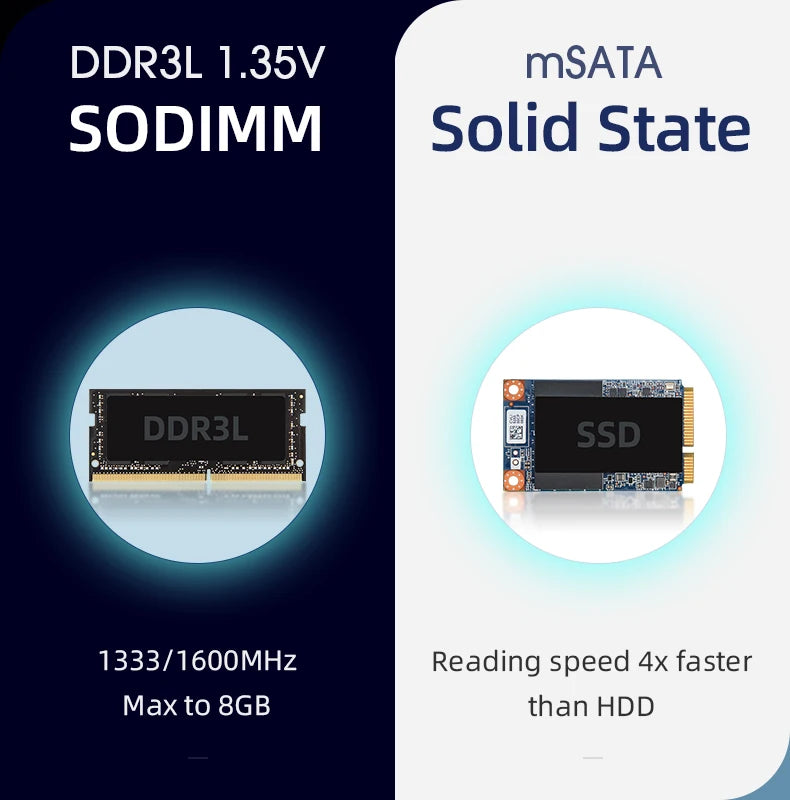 SODIMM, DDR3L 1333/1600MHz 1.35V Max support 1x 8GB  |