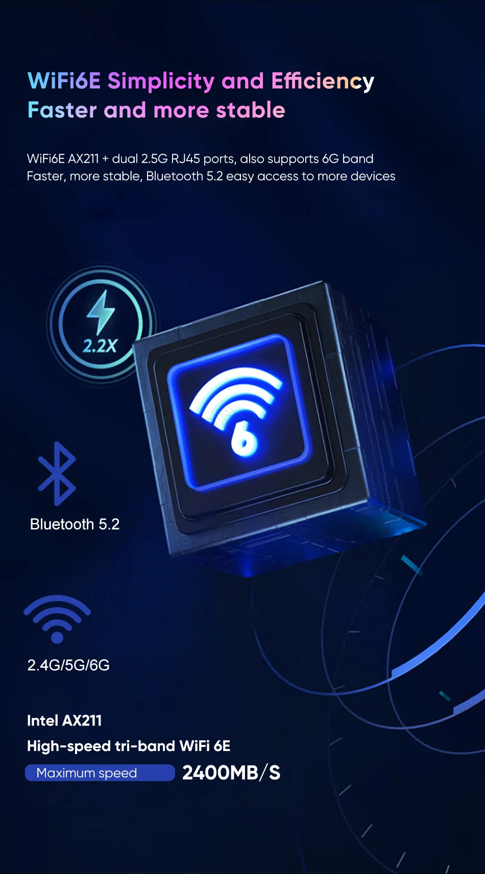 WiFi: WiFi6E with Bluethooth5.2