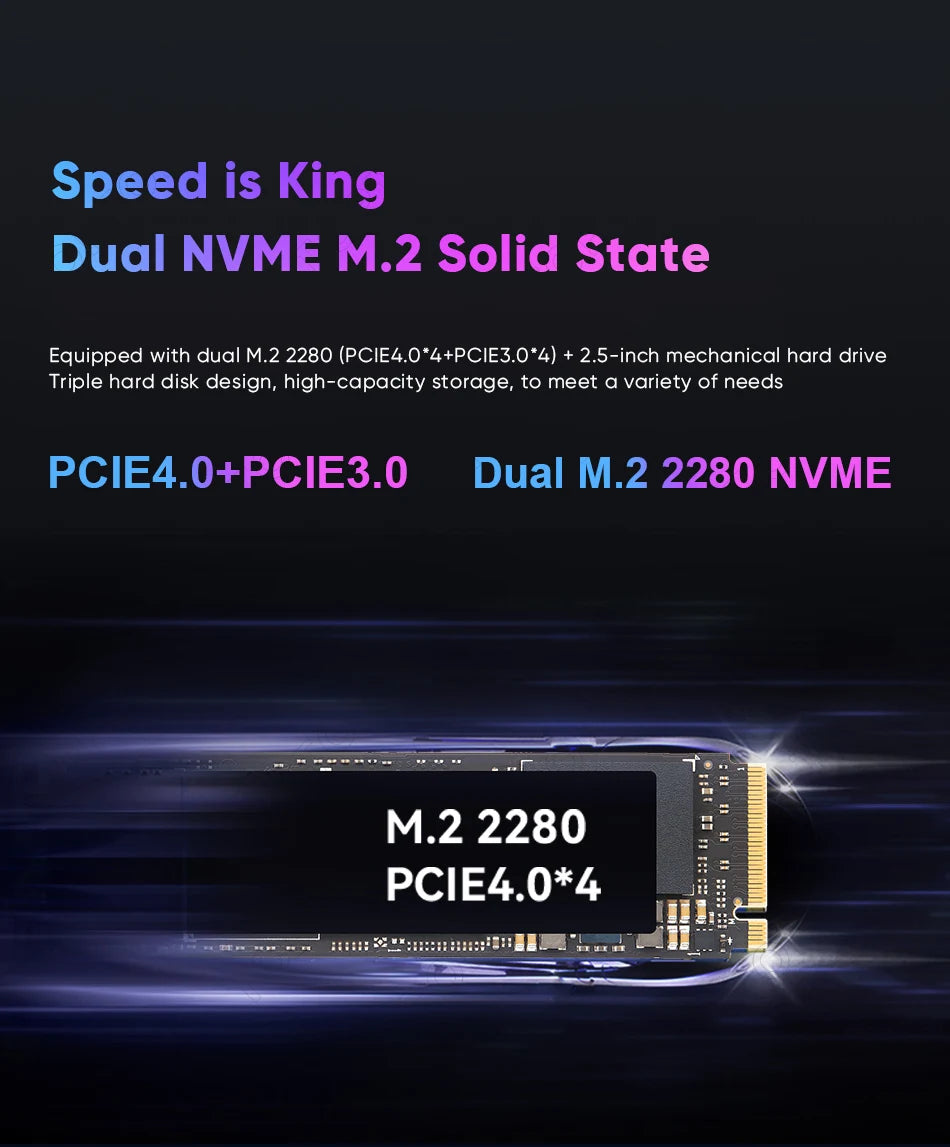 SSD: Support 1xM.2 2280 NVME/PCIE4.0x4, 1xM.2 2280 NVME/PCIE3.0x4