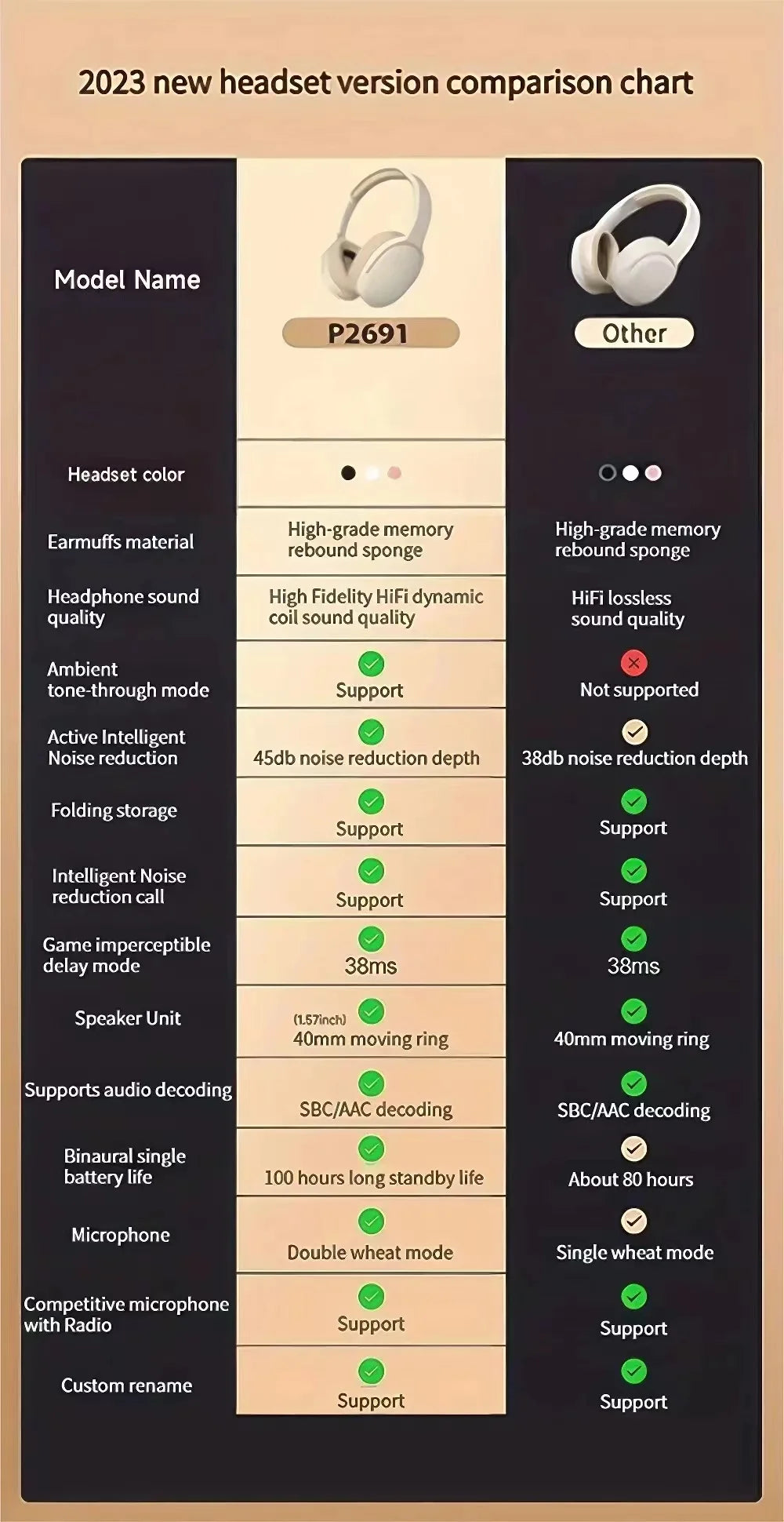 New Wireless Bluetooth Headphones Over Ear HIFI Stereo Headsets True Sports With Earphones TF/AUX Music Player with Mic for Gift