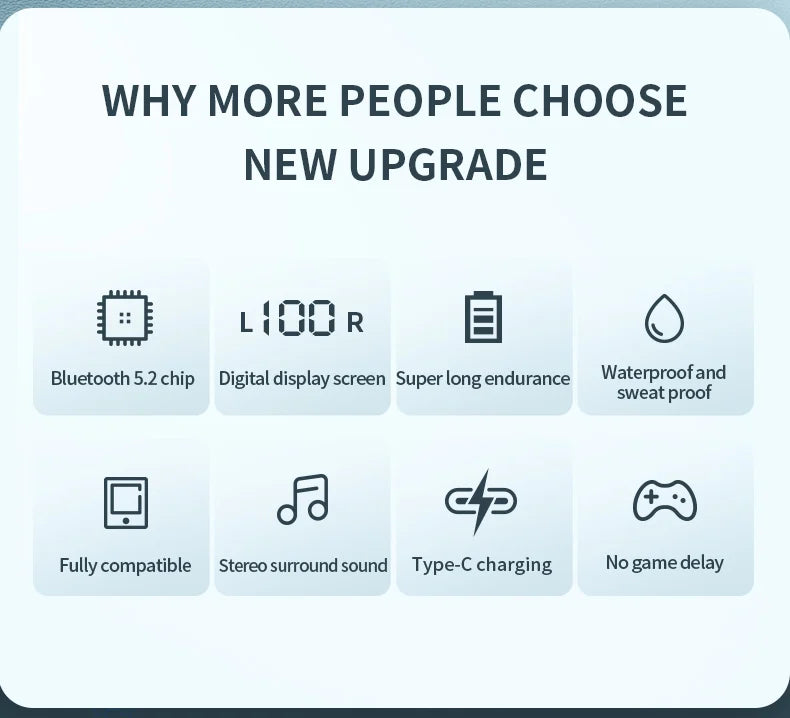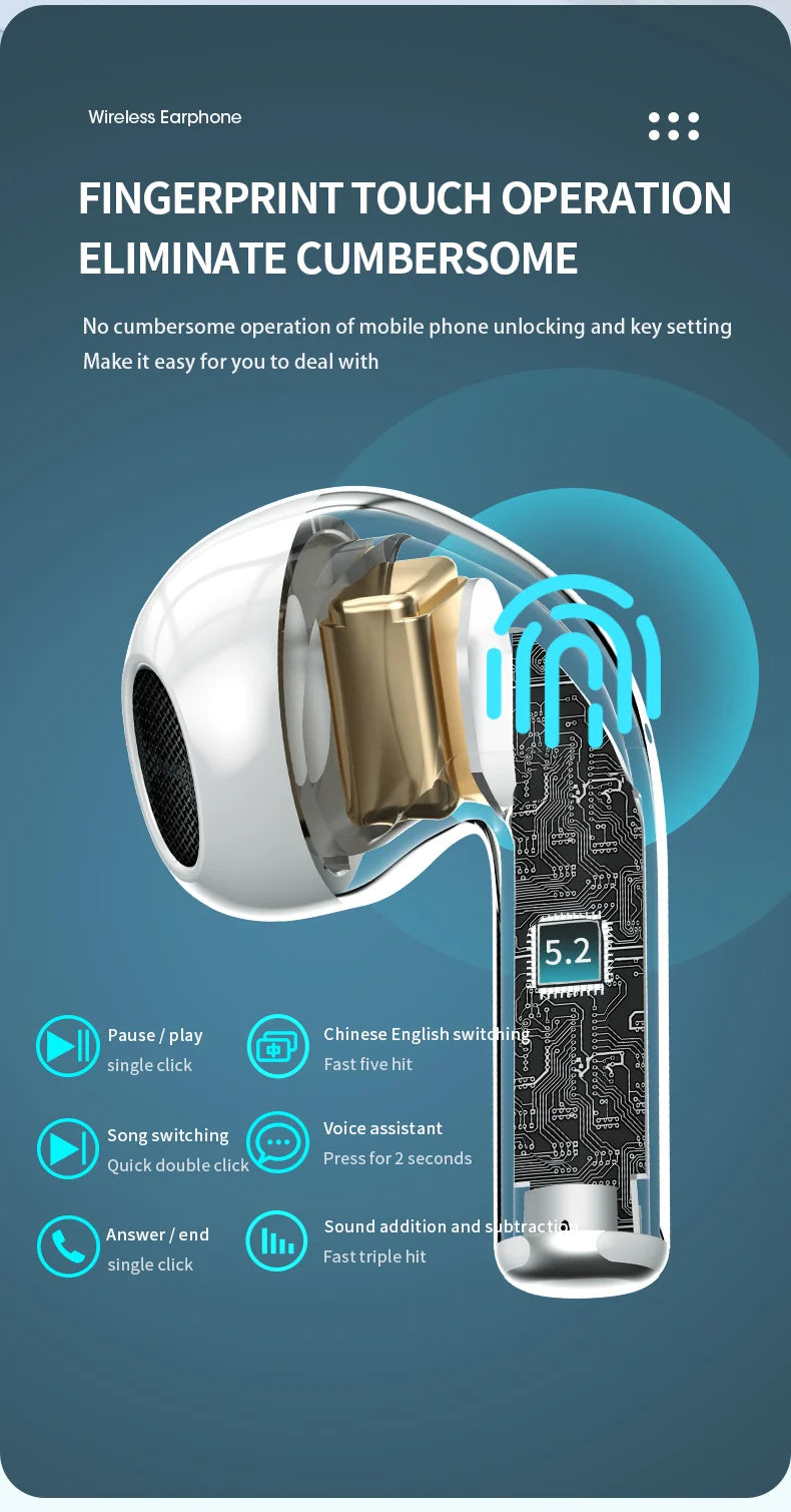 Wireless Bluetooth Earphones HIFI Stereo Waterproof Sports Headphones TWS Mic HD Call Headset LED Display Music Gaming Earbuds