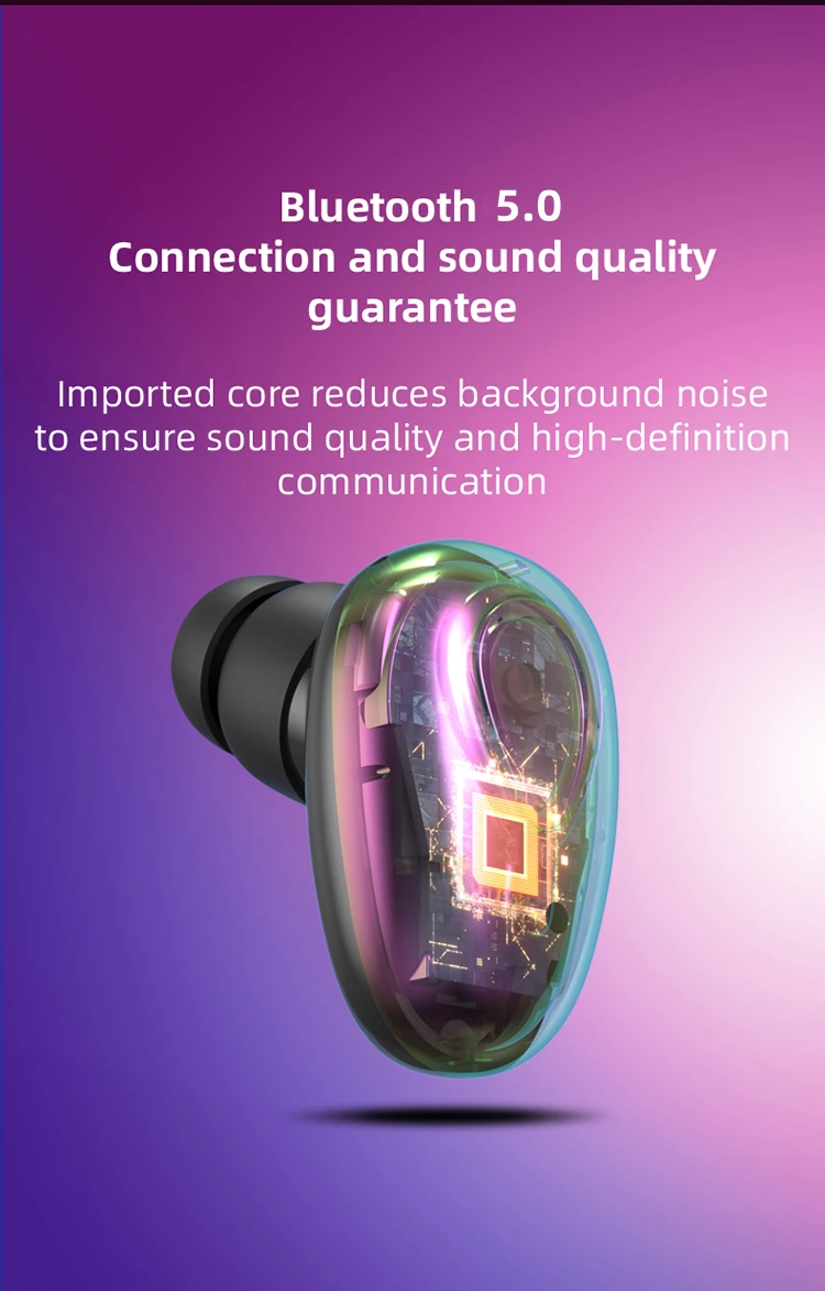 Mini in ear wireless invisible designed, super small size and can be in the ear, no wearing burdens.